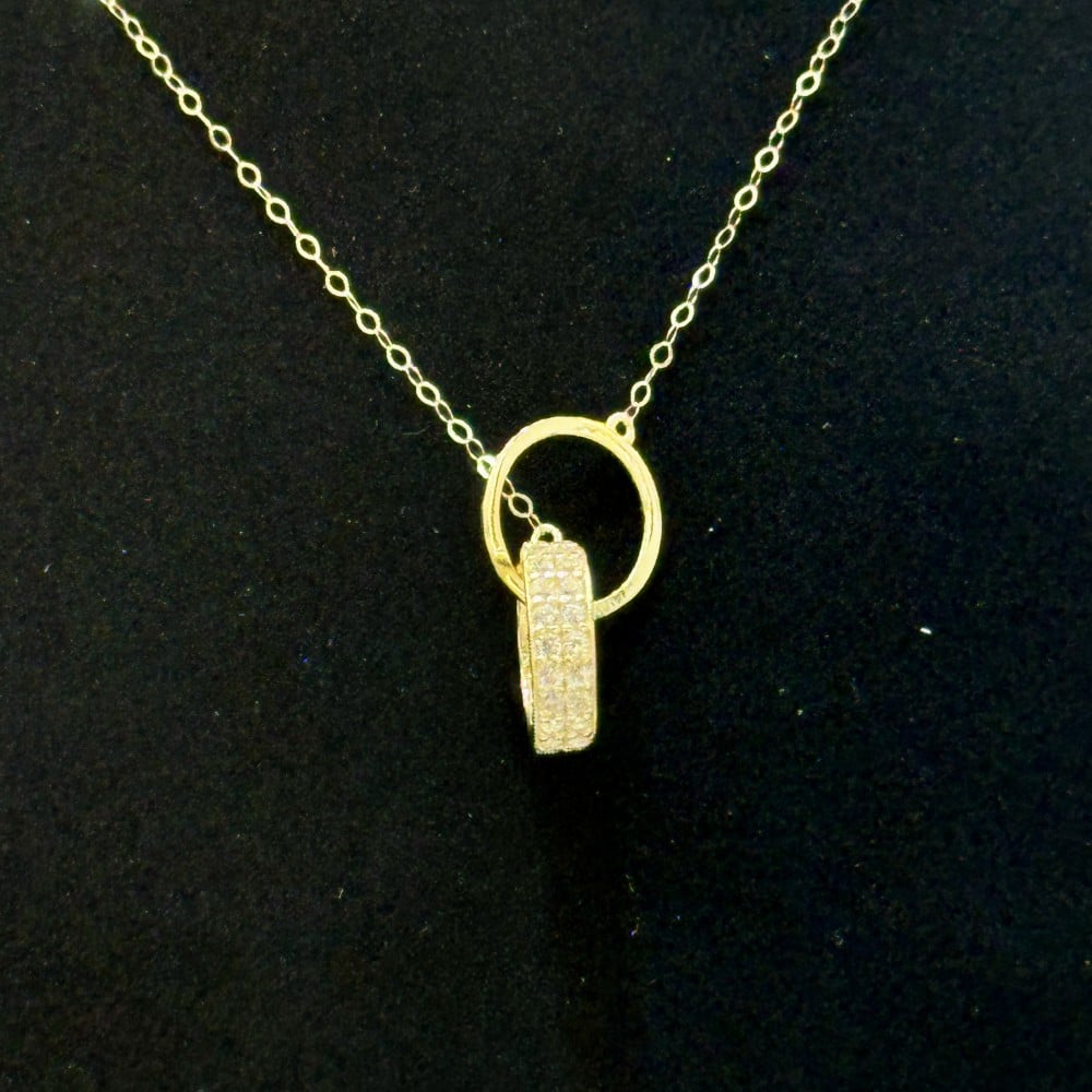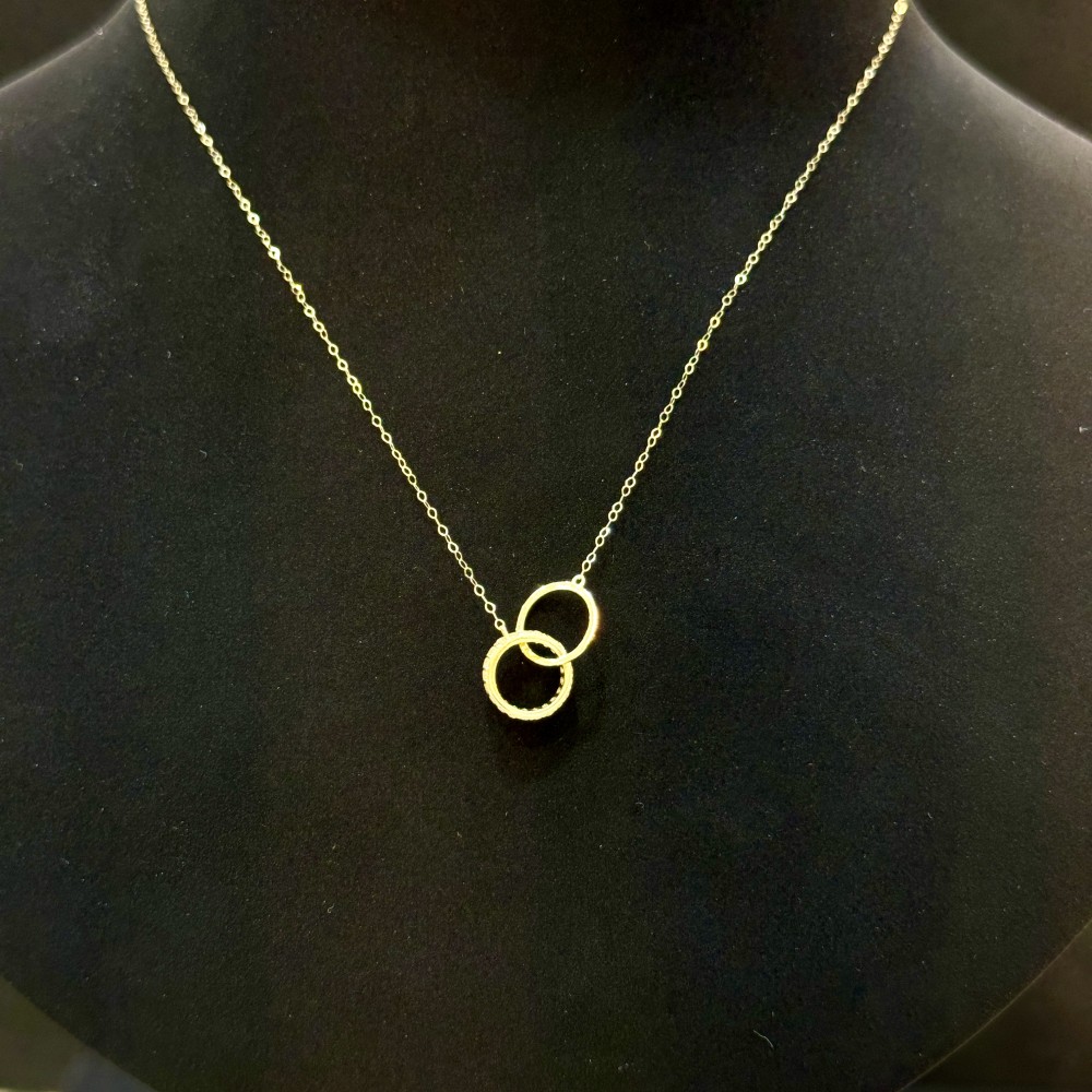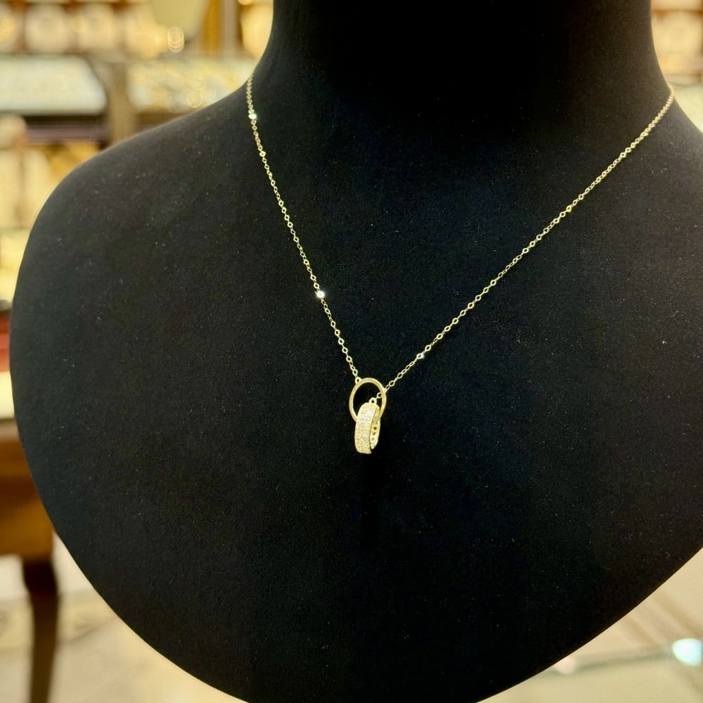 سلسال انيق بتصميم توينز عباره عن حلقتين من الذهب المزين بالزركون.
