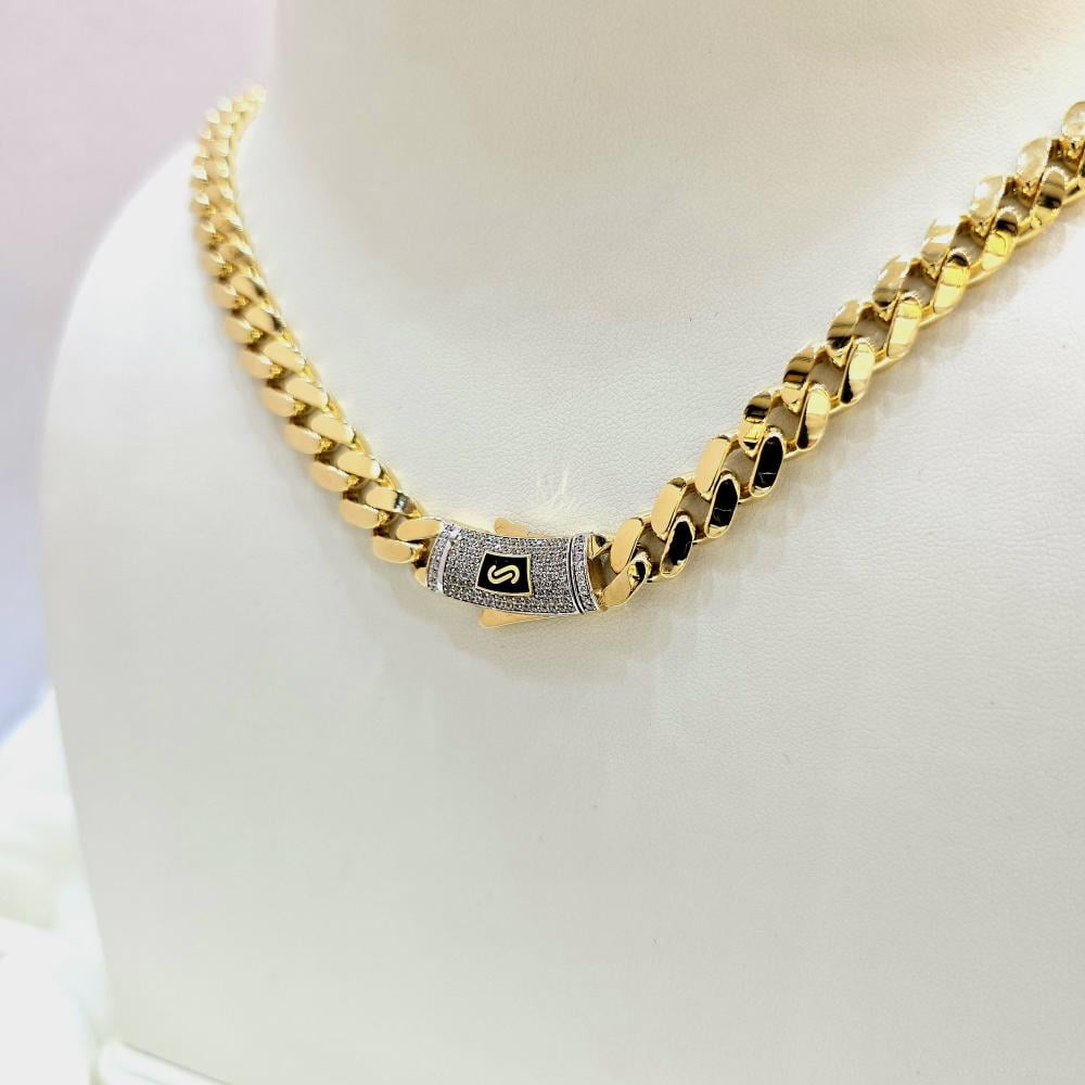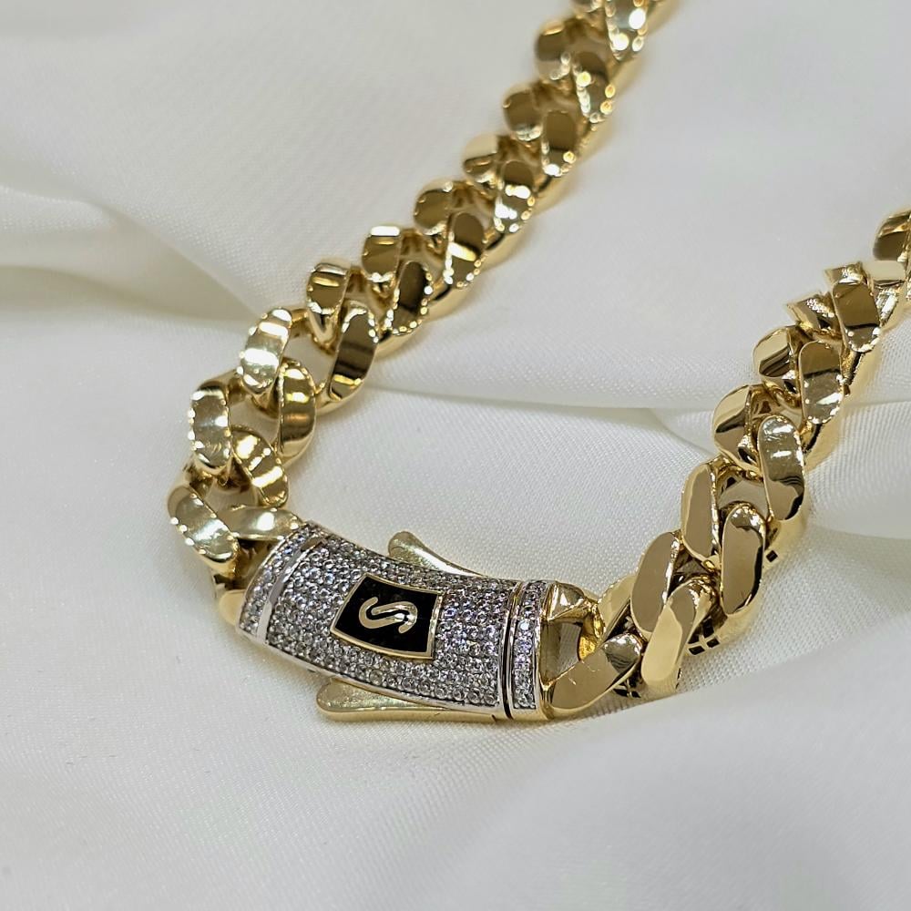 سلسال من الذهب تتصميم الجنزير يتوسطه قفل الموناكو المزين بالفصوص و الشعار.