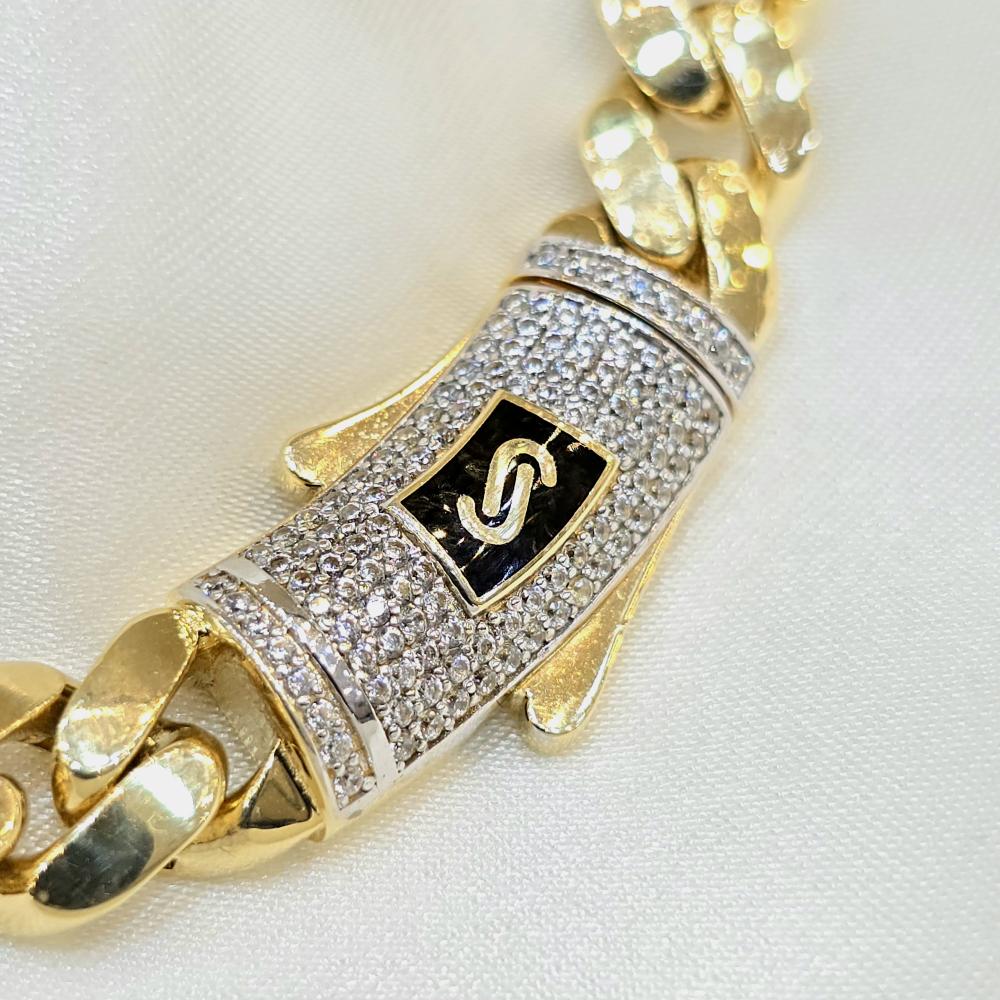 - ذهب أصفر تصميم جنزير الموناكو مزين بالقليل من الزركون.